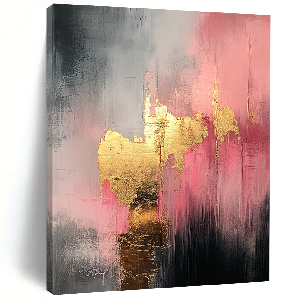 A beautiful abstract painting with white, pink, and gold tones, featuring an atmospheric background that creates a sense of mystery. The main colors include gray and black, with a delicate texture and light in the center. It features gold leaf embellishments, creating a dreamy atmosphere. The composition is symmetrical and balanced, with soft lighting highlighting the details. A close-up shot captures the essence of luxury. This artwork perfectly reflects the modern art style., Canvas Texture,UHDTransform cruise ship public areas with a giant modern abstract canvas, a great option for “large abstract art for maritime hospitality.” Tailor the artwork with travel-inspired abstract designs and vibrant color schemes to match the ship’s itinerary and style. Painted with saltwater-resistant, anti-fade paints, it’s a sought-after option for “custom oversized abstract canvases for cruise ships,” enhancing the onboard experience for passengers. Packing: Rolled and shipped in a solid tube. The painting come with EXTRA 2-3 inch white border around for stretching or framing.Delivery time: You will receive the painting around 7-12 days( 3-5 days to finish the painting, 5-7 days to your home.by UPS And Dhl)