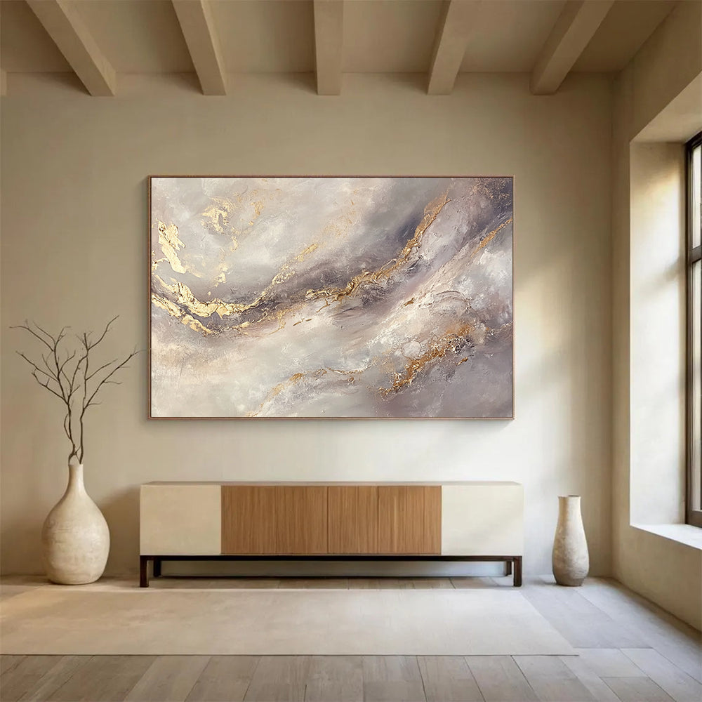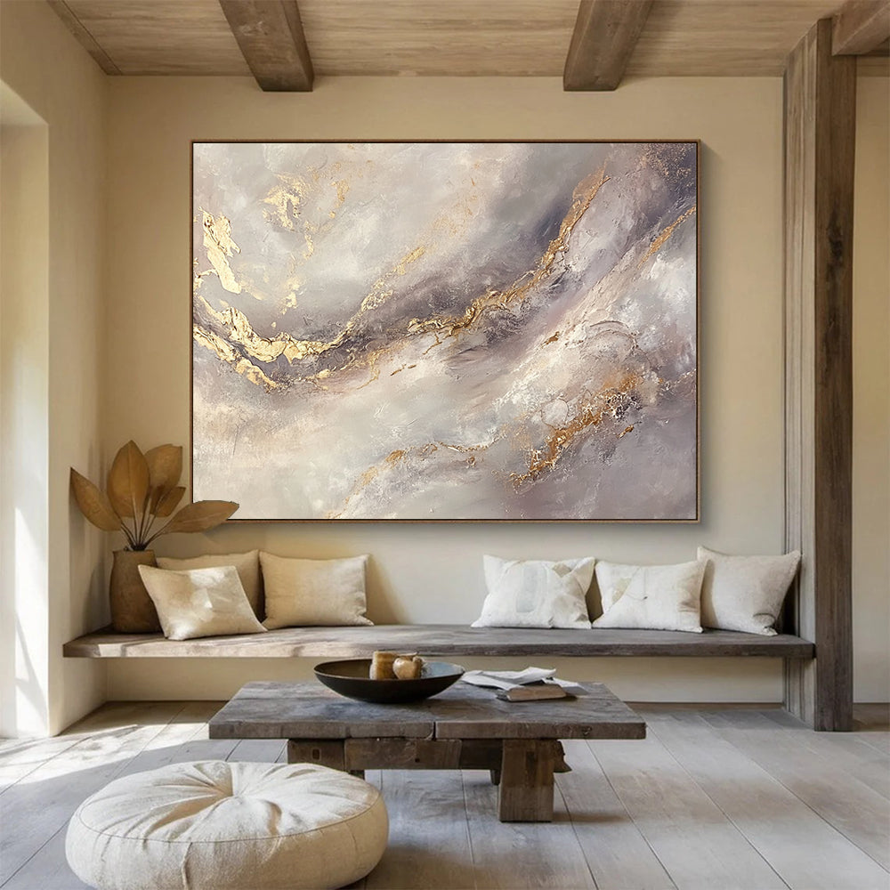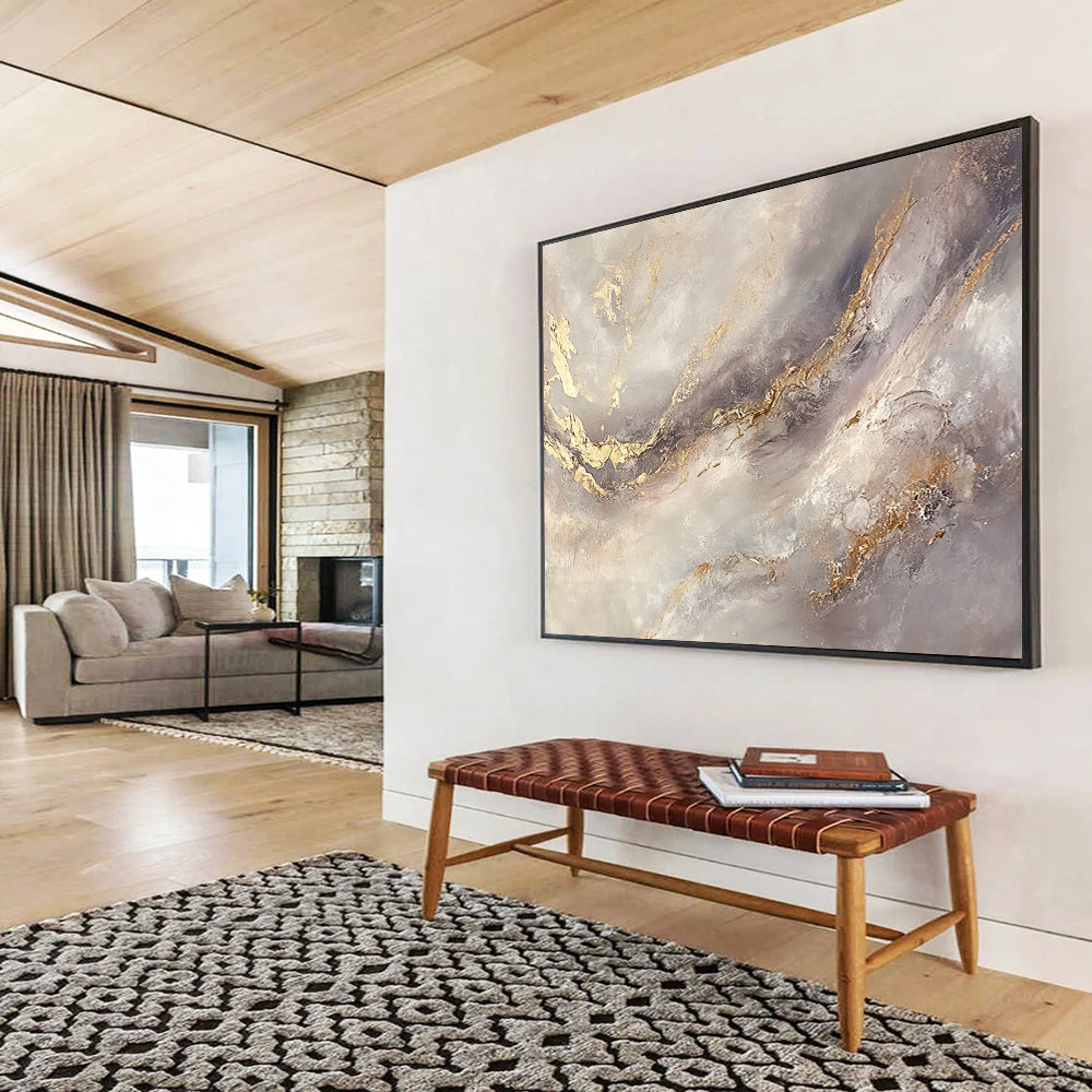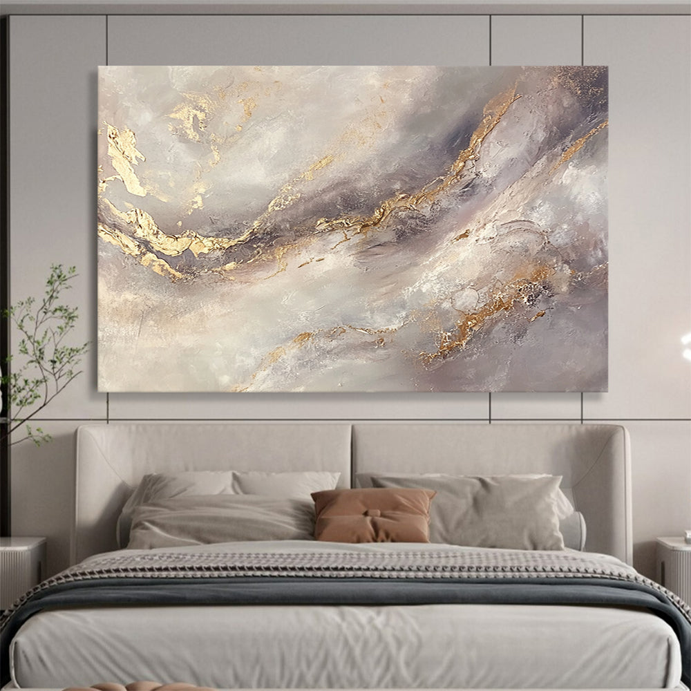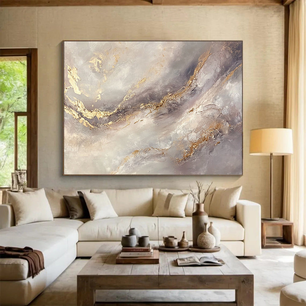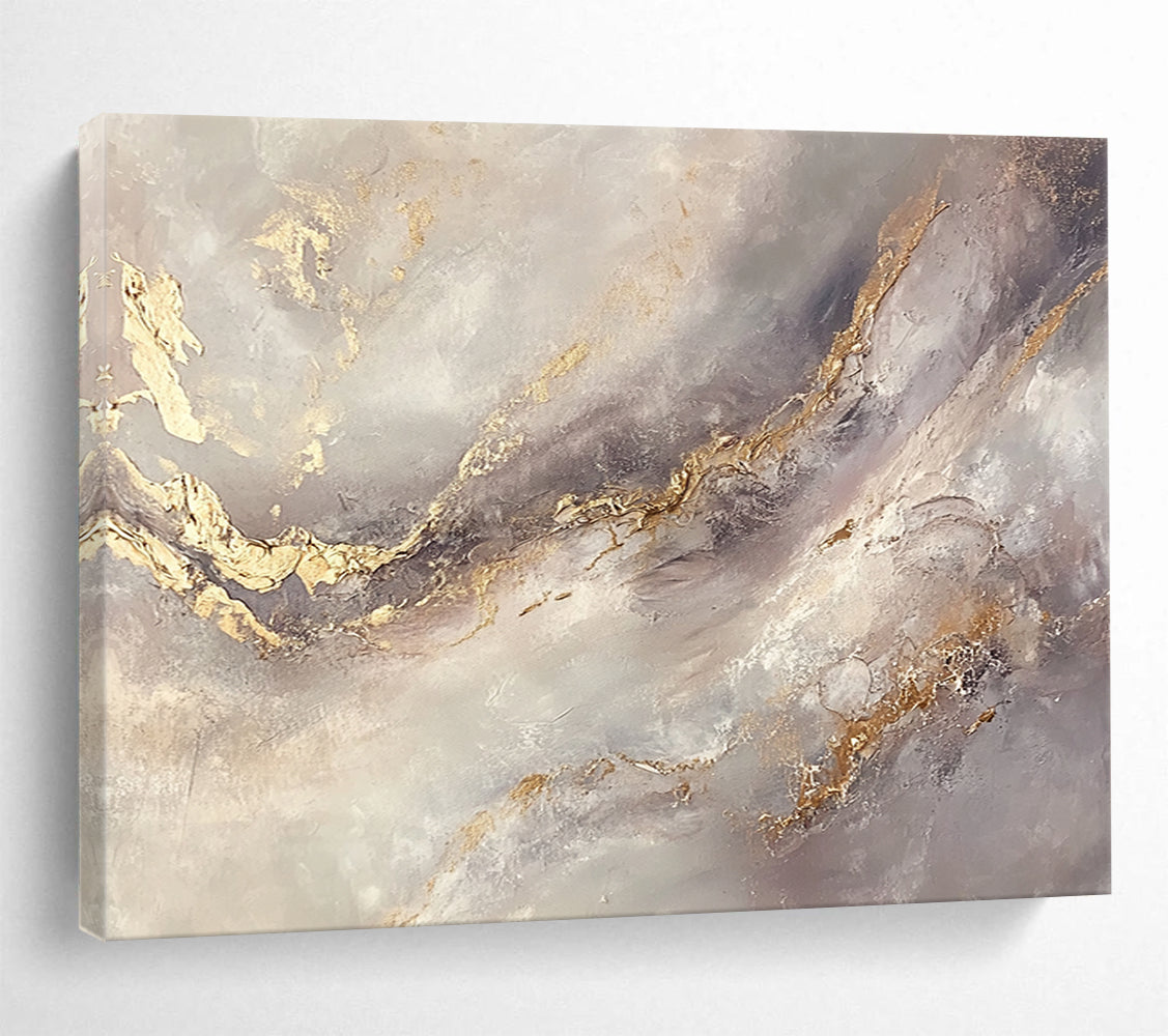 “Gold - Accented Gray Abstract” features gray and gold in abstract, textured swirls. Inspired by luxury minimalist art, it adds a touch of opulence. Perfect for a high - end bedroom or a sophisticated lounge, creating a glamorous, calm atmosphere. A luxurious, understated piece—own it to bring elegance home! Packing: Rolled and shipped in a solid tube. The painting come with EXTRA 2-3 inch white border around for stretching or framing.Delivery time: You will receive the painting around 7-12 days( 3-5 days to finish the painting, 5-7 days to your home.by UPS And Dhl)