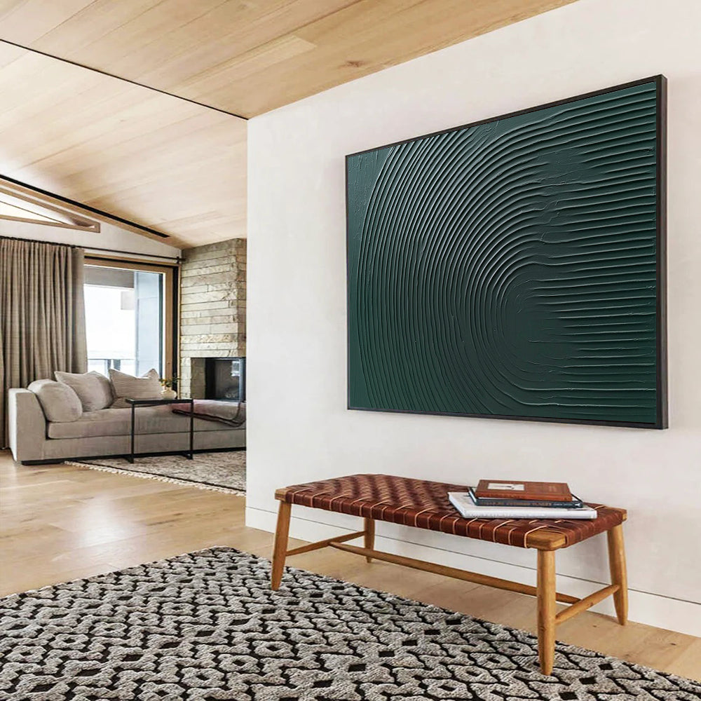 Get lost in the rhythm of green circles! This abstract acrylic work, influenced by the minimalist textures of Agnes Martin, features deep greens and repetitive circular patterns. The artist, inspired by the soothing repetition of nature (like tree rings), used careful brushstrokes to build a meditative texture. Perfect for a yoga studio, enhancing mindfulness, or a bedroom, adding a touch of understated elegance. It’s a silent symphony of color and shape. Let your walls resonate with this green, textural harmony – a perfect backdrop for peaceful moments! Packing: Rolled and shipped in a solid tube. The painting come with EXTRA 2-3 inch white border around for stretching or framing.Delivery time: You will receive the painting around 7-12 days( 3-5 days to finish the painting, 5-7 days to your home.by UPS And Dhl)