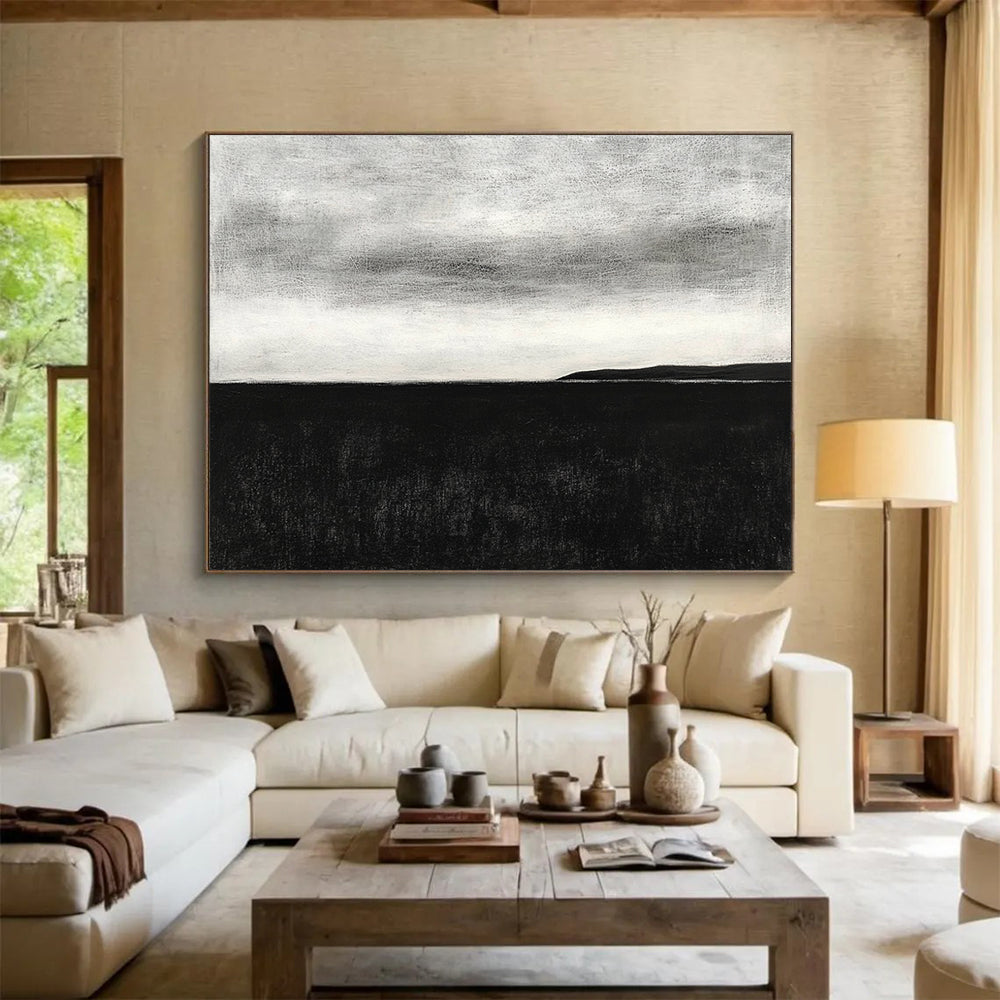 Embrace minimalist serenity! Black and white meet in a calm sea - sky horizon, echoing Mark Rothko’s color - field simplicity. The artist painted slow, meditating on quiet coasts. Ideal for a study or a peaceful living room. Bring home this silent beauty—your space will breathe! Packing: Rolled and shipped in a solid tube. The painting come with EXTRA 2-3 inch white border around for stretching or framing.Delivery time: You will receive the painting around 7-12 days( 3-5 days to finish the painting, 5-7 days to your home.by UPS And Dhl)
