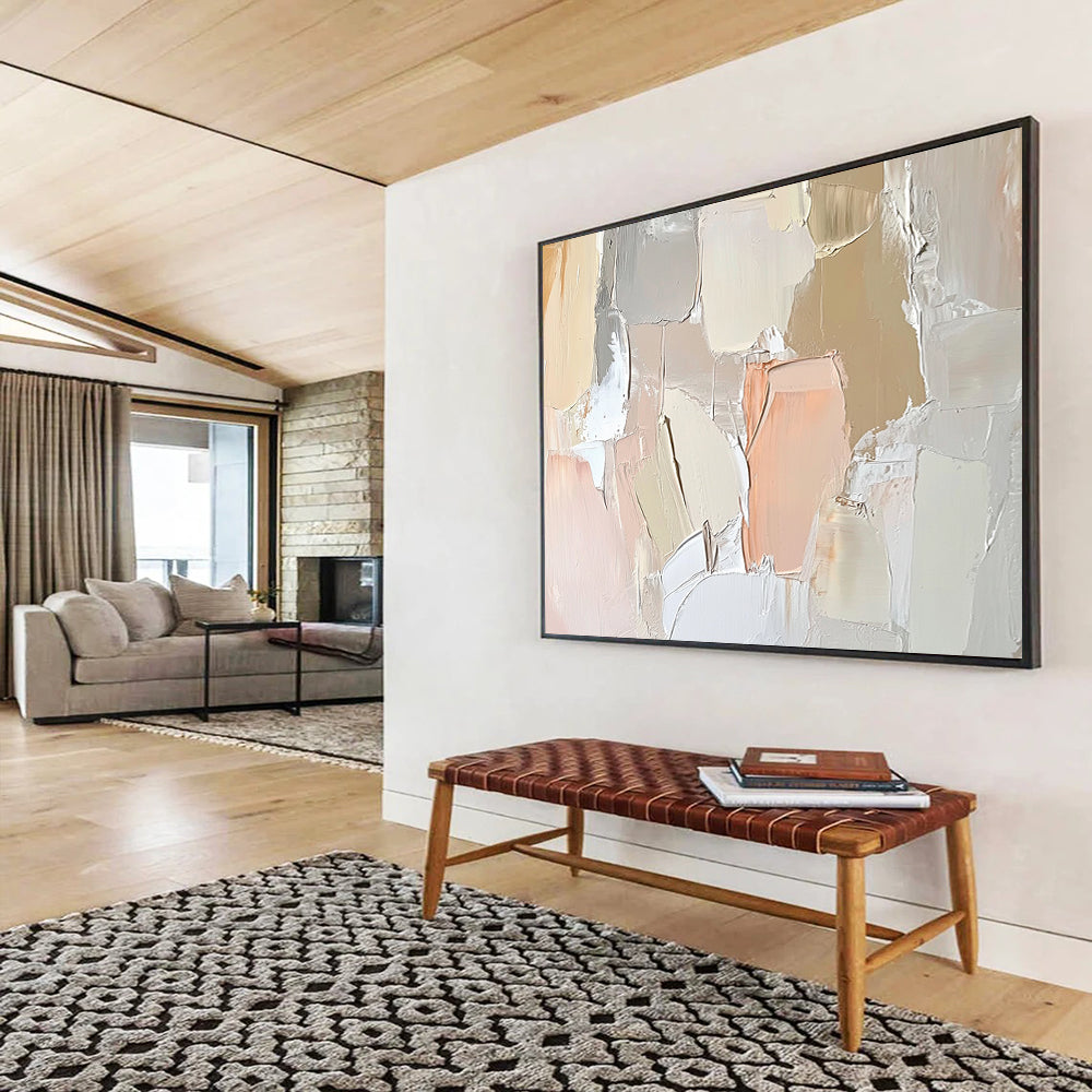 “Pastel Abstract Texture” - Beige, Pink, White, Soft Textured Painting On Canvas HB1013
